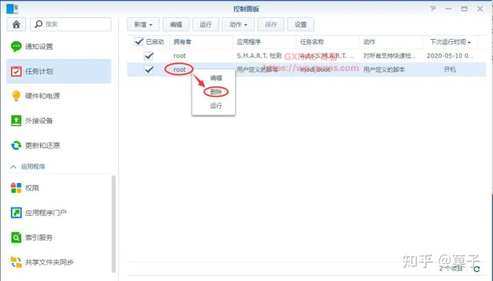 十一、上传完成;群晖控制面板,任务计划,找到前面添加的任务,右键,删除;